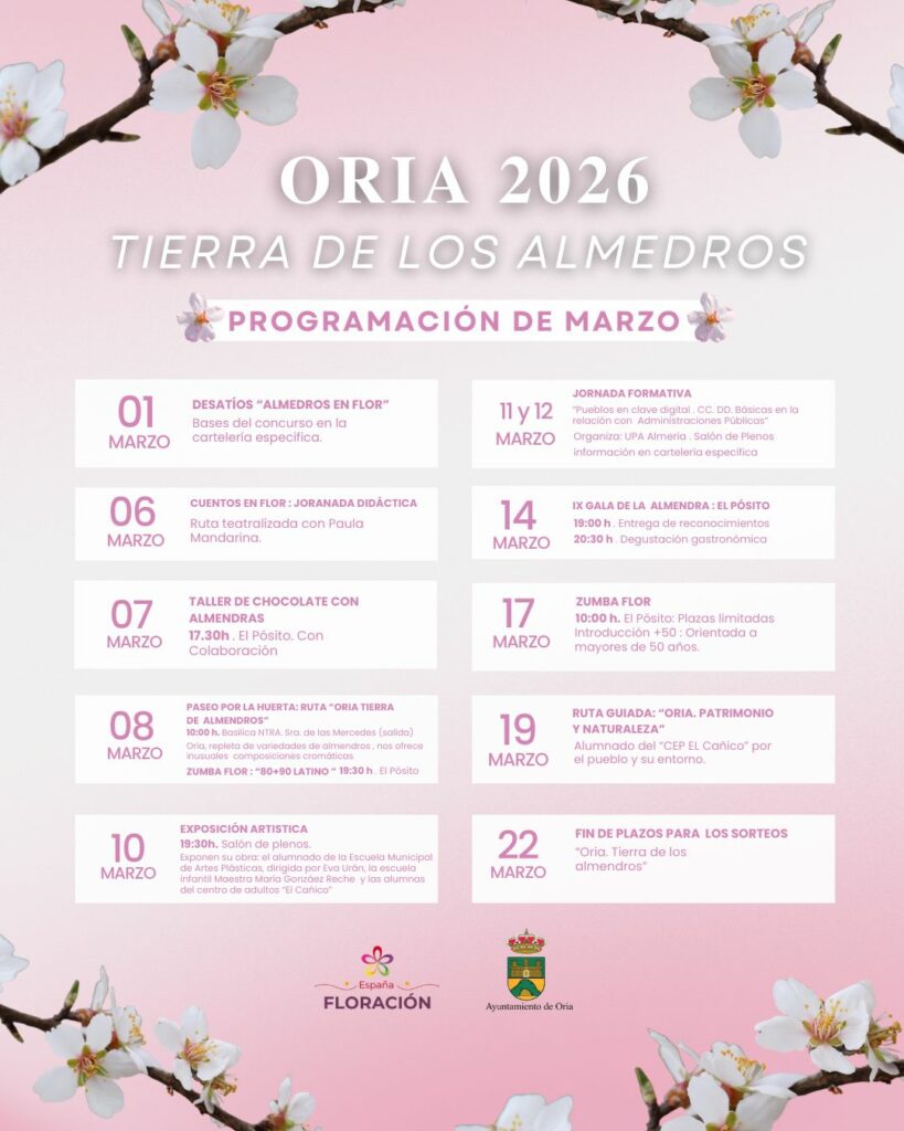 Oria se suma a España en Floración con la floración del almendro y una agenda especial en marzo